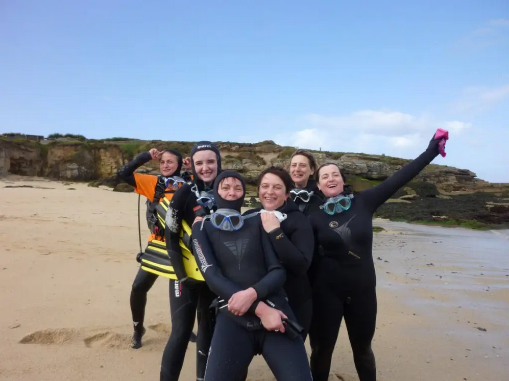Palmes, masque,tuba et une combinaison de 7 mm sont indispensables dès le début de la formation.