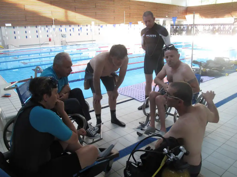 Notre club propose des formations aux plongeurs en situation de handicap mais aussi des formations pour devenir moniteurs handisub.